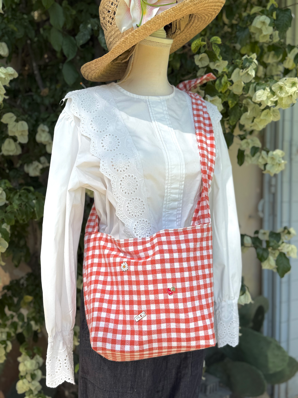 Cabas Morgane XL reversible carreaux vert bouteille / écru